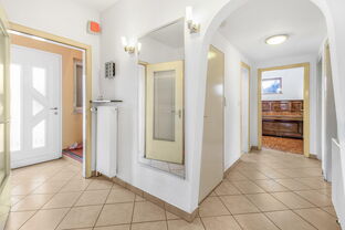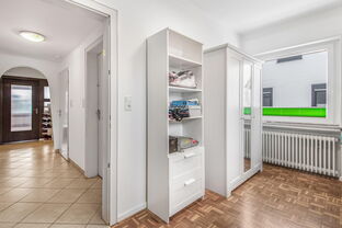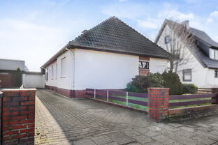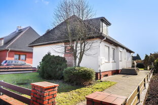 Wer ein solides Einfamilienhaus mit viel Platz für Familie und Hobbies sucht ist bei dieser Immobilie an der richtigen Adresse. Mit nur wenigen Stufen gelangen Sie in das überwiegend stufenlose Hochparterre, welche über drei Schlafzimmer, ein Badezimmer mit Fenster, ein Gäste-WC mit Fenster und einer Küche mit angrenzendem Wohnzimmer verfügt. Im Dachgeschoss entstanden zwei weitere Schlafzimmer sowie ein innenliegendes Duschbad.