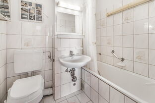 Die Wohnung verfügt über ein helles Wohnzimmer, zwei weitere gut geschnittene Zimmer, die sich optimal als Schlaf- und Arbeitszimmer nutzen lassen, sowie eine moderne Einbauküche, die mit allem ausgestattet ist, was für den täglichen Bedarf erforderlich ist. Der praktische Abstellraum in der Wohnung bietet zusätzlichen Stauraum für diverse Haushaltsgegenstände. Ein Personenaufzug sorgt für komfortablen Zugang bis in das 5. Obergeschoss, während der Kellerraum noch weitere Staufläche bietet. Die Wohnung befindet sich insgesamt in einem gepflegten Zustand und ist nach einer Renovierung sofort bezugsfertig.