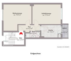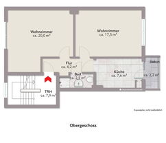 Die Wohneinheiten sind jeweils funktional geschnitten und bestehen aus zwei Zimmern, Küche, Bad und einen Balkon. Die Wohnung im Erdgeschoss wird frei geliefert. Die Einheit im ersten Obergeschoss ist seit dem 01.02.2015 vermietet und bietet somit eine solide Bestandsmiete. Auch die Dachgeschosswohnung, ebenfalls mit zwei Zimmern, Küche und Bad, steht leer, jedoch ohne Balkon.