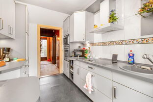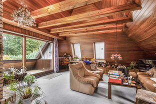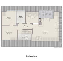 Die Wohnung im Dachgeschoss bietet ebenfalls eine Einbauküche und ein Badezimmer sowie 4 Zimmer. Hier sorgt ein gemütlicher Kamin für eine besondere Wohnatmosphäre, außerdem steht eine herrliche Dachloggia zur Verfügung, die zum Verweilen einlädt.