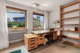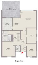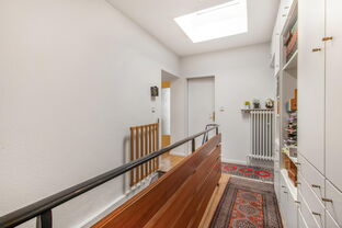Beim Betreten des Hauses gelangt man zunächst durch den Windfang in die großzügige, helle Diele. Von hier aus erreicht man zwei Kinderzimmer sowie ein Gäste-WC. Das Elternschlafzimmer liegt zentral in der Nähe des Badezimmers, das mit einer praktischen Größe überzeugt.
