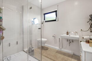 Das Obergeschoss bietet drei gut geschnittene Zimmer, die vielseitig genutzt werden können, sowie ein modernes Duschbad mit Fenster, das für ausreichend Tageslicht sorgt. Vom Schlafzimmer aus haben Sie direkten Zugang zur Loggia – ideal für eine ruhige Auszeit oder um den Blick in die Umgebung zu genießen. Rollläden an allen Fenstern bieten zusätzlichen Komfort und Schutz vor Sonne und Wind.