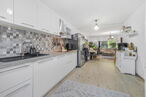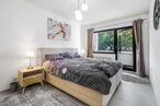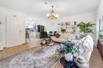 Im Erdgeschoss finden Sie eine offene Küche, die direkt in das großzügige Wohnzimmer übergeht. Von hier aus gelangen Sie auf die Terrasse, die nahtlos in den Garten übergeht – ein idyllischer Rückzugsort, der durch seine grüne Bepflanzung zum Entspannen einlädt. Zudem gibt es im Eingangsbereich einen praktischen Flur, der den Zugang zu einem Gäste-WC ermöglicht.