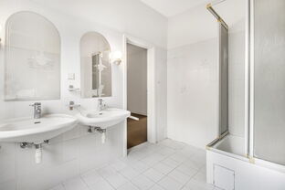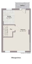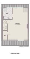 Das Dachgeschoss wurde etwa 1980 ausgebaut. Die geöffnete Decke zum Spitzboden sorgt hier für ein großzügiges Raumgefühl. Zusätzlich stehen ein Abstellraum – ideal als begehbarer Kleiderschrank oder Stauraum – sowie ein weiteres Badezimmer zur Verfügung.