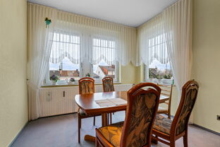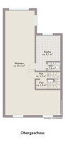 Das Obergeschoss beeindruckt mit einem großzügigen Wohnraum, der zum Entspannen oder geselligen Beisammensein einlädt. Hier befindet sich außerdem eine Küche sowie ein separates Gäste-WC, das den Wohnkomfort abrundet.