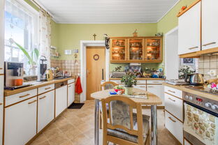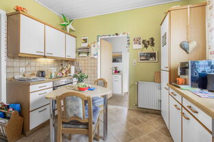 Das Erdgeschoss beherbergt darüber hinaus ein gemütliches Esszimmer, das nahtlos in die angrenzende Küche übergeht – der ideale Ort für gesellige Stunden mit Familie und Freunden.