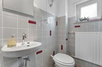 Der Eingangsbereich empfängt Sie mit einem praktischen Windfang, der für eine angenehme Trennung zwischen dem Außen- und dem Innenbereich sorgt. Im Erdgeschoss befindet sich ein großzügiger Wohn- und Essbereich mit Zugang zur großen Terrasse, die mit einer Markise ausgestattet ist, perfekt für gemütliche Stunden im Freien. Die vorhandene Einbauküche fügt sich harmonisch in das Raumkonzept ein. Ein Gäste-WC mit Fenster komplettiert das Erdgeschoss.