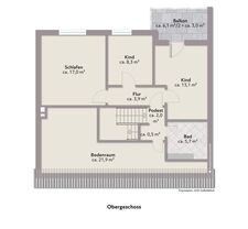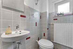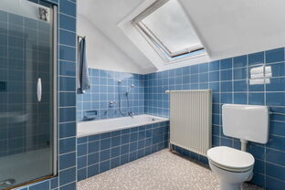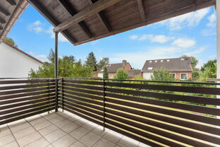 Im Obergeschoss erwarten Sie weitere Zimmer sowie ein helles Wannenbad mit Fenster. Der Balkon bietet zusätzlichen Freiraum und einen schönen Blick in den Garten.