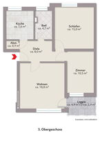 Auf ca. 67,9 m² Wohnfläche verteilen sich drei gut geschnittene Zimmer, die vielseitig nutzbar sind – ideal für Paare, kleine Familien oder auch als Kapitalanlage. Das Herzstück der Wohnung bildet das großzügige Wohnzimmer mit Zugang zur Loggia, die an warmen Tagen zum Entspannen im Freien einlädt.