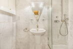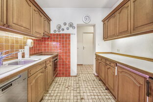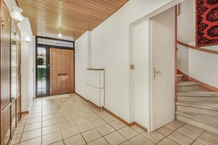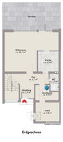 Im Erdgeschoss empfängt eine geräumige Wohndiele die Bewohner und Gäste, von dem aus ein Gäste-WC mit Dusche, die Küche und der Wohn-/Essbereich sowie ein geräumiger Abstellraum/Hochkeller zugänglich sind. Vom großzügigen, lichtdurchfluteten Wohn-/Esszimmer mit einer breiten Fensterfront, die den Raum angenehm hell wirken lässt, gelangt man auf die große Terrasse mit elektrischer Markise. Die Küche grenzt direkt an den Essbereich. Der gepflegte Garten ist ein echtes Highlight für Familien und Gartenfreunde.