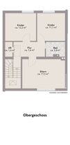 Im Obergeschoss befinden sich zwei Kinderzimmer, ein Elternschlafzimmer und ein Badezimmer mit Badewanne. Über eine weitere Treppe ist der ausgebaute Dachboden erreichbar, der ein weiteres Zimmer bietet, aber nicht in der Wohnfläche enthalten ist. Also ein zusätzliches Plus.