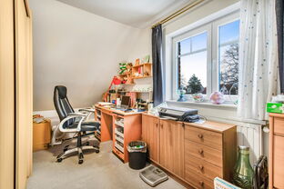 Im Obergeschoss befinden sich drei gut geschnittene Zimmer, die sich ideal als Schlaf-, Kinder- Gäste- oder Arbeitszimmer eignen. Das großzügige Vollbad mit Tageslicht sogt für zusätzlichen Wohnkomfort. Über eine weitere Treppe erreicht man den ausgebauten Dachboden, der zusätzlich Wohn- oder Nutzraum bietet und vielseitig verwendbar ist.