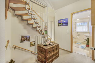 Vom Hauseingang gelangt man zunächst in den einladenden Flur, von dem aus alle Bereiche des Erdgeschosses erreichbar sind.