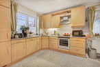 Die großzügige Wohnküche mit Essplatz bildet einen zentralen Treffpunkt des Hauses. Das lichtdurchflutete Wohnzimmer überzeugt durch seinen geräumigen Grundriss, so dass auch hier ausreichend Platz für einen integrierten Essbereich vorhanden wäre.