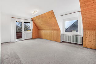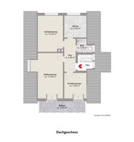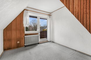 Im Dachgeschoss befindet sich eine weitere Wohneinheit mit ebenfalls drei Zimmern, Badezimmer und einem weiteren Raum der ursprünglich als Küche genutzt wurden ist. Ein eigener Balkon rundet diese Einheit ab und bietet einen angenehmen Rückzugsort im Freien.