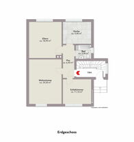 Die Einheit im Erdgeschoss verfügt über einen zentralen Flur, von dem aus alle Räume bequem erreichbar sind. Sie umfasst drei Zimmer, eine Küche, sowie ein Tageslichtbadezimmer. Der Wohnbereich wird durch einen angrenzenden Wintergarten erweitert, der zusätzlichen Wohnkomfort schafft und den Blick ins Grüne eröffnet.