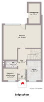 Das Haus überzeugt durch eine praktische und familienfreundliche Raumaufteilung über zwei Vollgeschosse. Im Erdgeschoss befindet sich der großzügige Wohnbereich mit einer Fläche von etwa 30 m², der durch seine Größe vielfältige Gestaltungsmöglichkeiten bietet und viel Platz für Wohnen und Essen schafft. Ergänzt wird das Erdgeschoss durch eine separate Küche, ein Gäste-WC sowie einen Hauswirtschaftsraum und einen praktischen Abstellraum.