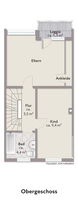 Im Obergeschoss befinden sich drei Schlafzimmer unterschiedlicher Größe sowie ein Tageslichtbad mit Badewanne. Das Dachgeschoss ist aktuell als Stauraum ausgebaut, kann aber perspektivisch auch wohnlich genutzt werden.