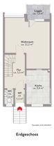 Im Erdgeschoss empfängt Sie ein einladender Flur mit Zugang zum hellen Wohn- und Essbereich, der einen schönen Blick in den Garten bietet. Die angrenzende Küche bietet ausreichend Platz und kann bei Bedarf offen zum Wohnbereich gestaltet werden. Ein Gäste-WC komplettiert die Etage.