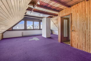 Das ausgebaute Dachgeschoss besticht durch eine großzügige Fensterfront und lässt sich mit Ihren kreativen Ideen in ein echtes Wohnhighlight verwandeln.