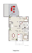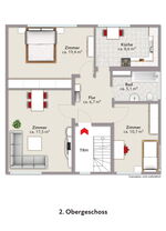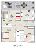 Die Wohnung im 1. Obergeschoss hat eine Wohnfläche von ca. 87 m² und ist seit dem 01.05.2019 vermietet. Die monatliche Nettomieteinnahme beträgt € 690,-.