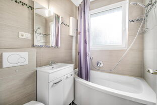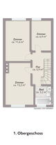 Das Obergeschoss verfügt über zwei reele Zimmer und ein Tageslichtbad mit Badewanne.