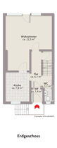 Im Erdgeschoss befinden sich außerdem die Küche mit Einbauküche, ein Gäste-WC, der Flur und ein Windfang.