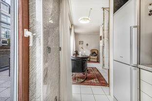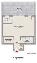 Diese gepflegte 1-Zimmer-Hochparterrewohnung mit nur zwei Stufen eignet sich ideal für Singles und ältere Menschen, die komfortables Wohnen in guter Lage schätzen. Die ca. 58,48 m² Wohnfläche verteilen sich auf einen großzügigen Wohn-Schlafbereich mit pflegeleichtem Fliesenboden, eine separate Küche mit Einbauküche sowie ein innenliegendes Duschbad mit WC und Urinal. Im Flur steht zudem eine praktische Abstellnische zur Verfügung.