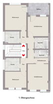 Im ersten Obergeschoss wurden zwei Wohnungen durch einen Durchbruch zusammengelegt. Es bestehen jedoch weiterhin zwei separate Mietverträge. Die Einheit verfügt über einen Balkon mit Ausrichtung zum ruhigen Innenhof. Im zweiten Obergeschoss befinden sich zwei klassische 2-Zimmer-Wohnungen, jeweils mit eigenem Balkon. Das dritte Obergeschoss bietet ebenfalls zwei 2-Zimmer-Wohnungen; der rückwärtige Wohnbereich verfügt hier über einen Balkon mit Blick ins Grüne.