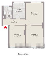 Diese gepflegte Eigentumswohnung befindet sich im Dachgeschoss eines Mehrparteienhauses und überzeugt durch ihren funktionalen Grundriss. Auf einer Wohnfläche von ca. 49 m² verteilen sich die Räume optimal und schaffen ein angenehmes Wohngefühl. Die Wohnung wurde vor kurzem renoviert und präsentiert sich entsprechend modern und einladend.