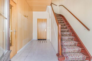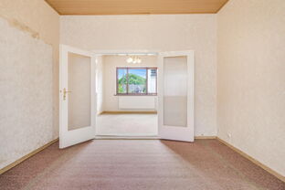 Bereits beim Betreten des Hauses beeindruckt der Eingangsbereich mit einer Deckenhöhe von knapp 3 Metern, die ein angenehmes Raumgefühl und Offenheit vermittelt. Auf der linken Seite des Flurs befinden sich die Wohnräume, die durch eine große Verbindungstür miteinander verbunden sind – ideal für großzügiges Wohnen mit fließenden Übergängen.