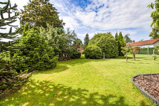 Der traumhaft angelegte Garten ist perfekt durchdacht in jedem etwas zu bieten: ruhige Sonnenplätze, schattige Sitzecken, die Poolecke sowie ein ganzer Bereich für Gemüse und Obst mit passendem Gewächshaus.