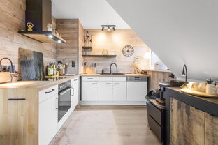 Das großzügige Dachgeschoss wurde in 1998/1999 erweitert und bietet einen modernen und offenen Wohnstil. Es erwarten Sie zwei Schlafzimmer, ein großes Vollbad mit Fenster, zwei Küchen, ein ausgebauter Dachboden mit WC (nur Nutzfläche aufgrund der Deckenhöhe), ein überdachter Balkon sowie ein eigener Garten mit Zugang zur Garage.
