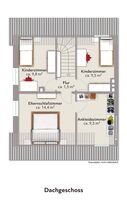 Im Dachgeschoss stehen zwei Kinderzimmer sowie ein Elternschlafzimmer mit Garderobe zur Verfügung. Von einem der Zimmer gelangt man in den ausbaufähigen Spitzboden. Das Haus ist voll unterkellert und zusätzlich befindet sich hier ein historischer Bunker aus der Kriegszeit.
