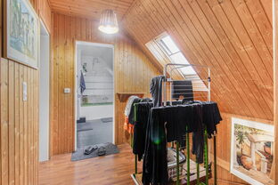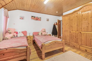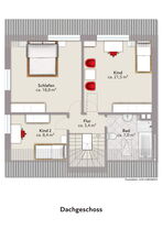 Im Dachgeschoss befinden sich ein weiteres Badezimmer mit Badewanne, ein Schlafzimmer sowie zwei Kinderzimmer, die über einen zentralen Flur erreichbar sind.