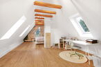Im Obergeschoss befinden sich zwei weitere Schlafzimmer, ein helles Vollbad mit Fenster, sowie ein ausgebauter Spitzboden, der derzeit als Schlafzimmer und Büro genutzt wird.