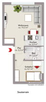 Die Wohnfläche von ca. 36 m² unterteilen sich in zwei Zimmer, eine Küche sowie ein Badezimmer.