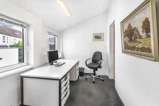 Im Erdgeschoss befindet sich eine Büroeinheit, während die oberen Geschosse insgesamt vier Wohneinheiten beherbergen. Die Immobilie eignet sich damit sowohl zur Eigennutzung – beispielsweise in Verbindung von Wohnen und Arbeiten – als auch solide Kapitalanlage.