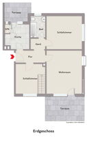 Ein besonderes Highlight sind die zwei Terrassen: Die rückwärtig gelegene Terrasse mit angrenzendem Gartenbereich bietet zusätzlichen Freiraum und lädt zum Verweilen im Grünen ein. Die vordere Terrasse ergänzt den Außenbereich und sorgt für weiteren Wohnkomfort.