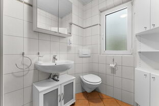 Die Wohnung verfügt über drei gut geschnittene Zimmer mit vielfältigen Nutzungsmöglichkeiten. Das helle, weiß geflieste Badezimmer sorgt für eine freundliche Wohnatmosphäre. Eine vorhandene Einbauküche inklusive Elektrogeräten ist bereits integriert und rundet das Angebot praktisch ab.