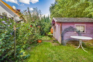 Auf dem großzügigen Grundstück von 532 m² finden Sie neben einer praktischen Garage auch einen Stellplatz im Freien sowie einen Abstellraum auf der rechten Haushälfte; und ein beheizbares Studio, welches einfach zu einer Garage umgebaut werden kann.
