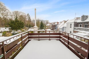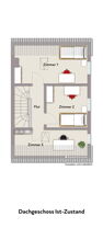 Das Obergeschoss verfügt über eine weitere Küche mit Zugang zur Dachterrasse, ein Wohnzimmer, ein Schlafzimmer sowie ein Badezimmer und eignet sich somit ideal als separate Wohneinheit. Über das Treppenhaus ist zudem das derzeit nicht ausgebaute Dachgeschoss erreichbar, das individuelle Gestaltungsmöglichkeiten bietet. Das Dach wurde im Jahr 2011 erneuert und gedämmt.