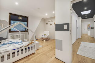Die drei Schlafräume befinden sich im hinteren Teil des Hauses. Hier haben Sie ausreichend Platz zum Einrichten und Wohlfühlen. Neben den beiden Kinderzimmern befinden sich sowohl das Gäste-WC als auch das Badezimmer, welches mit einer Dusche, einer Badewanne und einem WC ausgestattet ist.