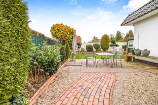 Die Wohnfläche von ca. 158 m² verteilt sich auf eine Diele, einen Wohnbereich, drei Schlafzimmer, eine Küche, ein Badezimmer, ein Gäste-WC sowie einen Wintergarten. Zusätzlich ist das Haus teilunterkellert.