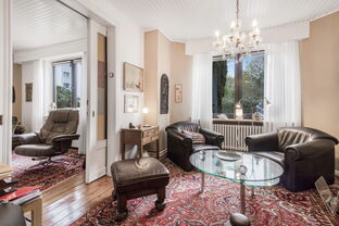 Besonders hervorzuheben sind die authentischen Details in beiden Wohnungen, darunter Holzdielen, historische Türrahmen, eine originale Schiebetür zwischen den unteren Wohnzimmern sowie erhaltene Wand- und Fußbodenfliesen.